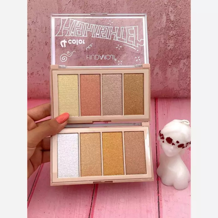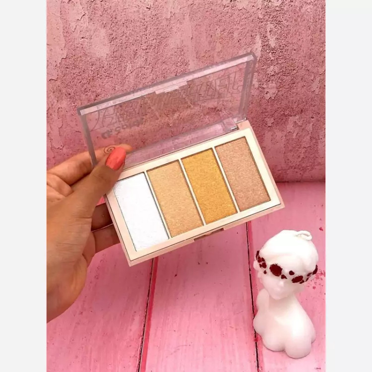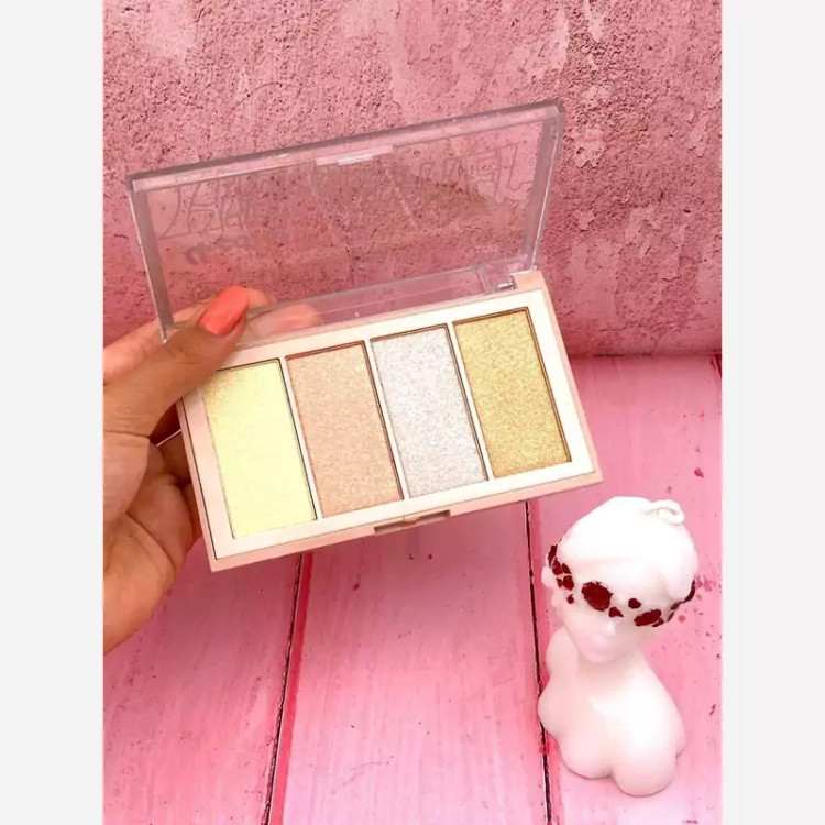هایلایتر پالت 4 رنگ در 2 سری پودری وشاین جذاب درخشش وپیگمنت فوق العاده رنگبندی عالی قابل استفاده برای صورت وبدن بدون ریزش