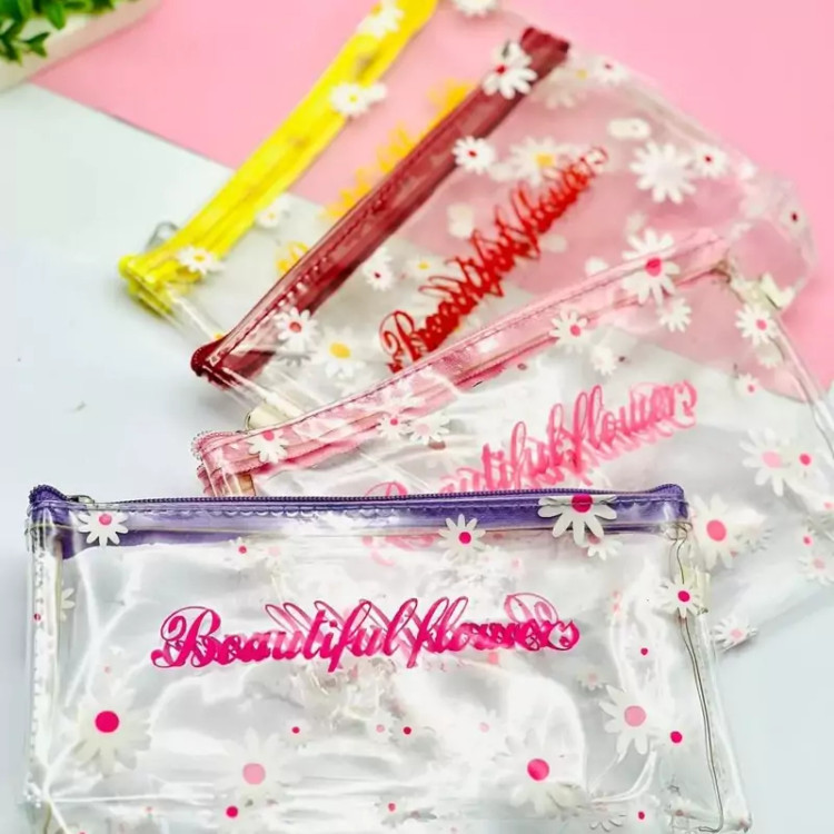 کیف لوازم آرایش شفاف طرح بابونه شیک