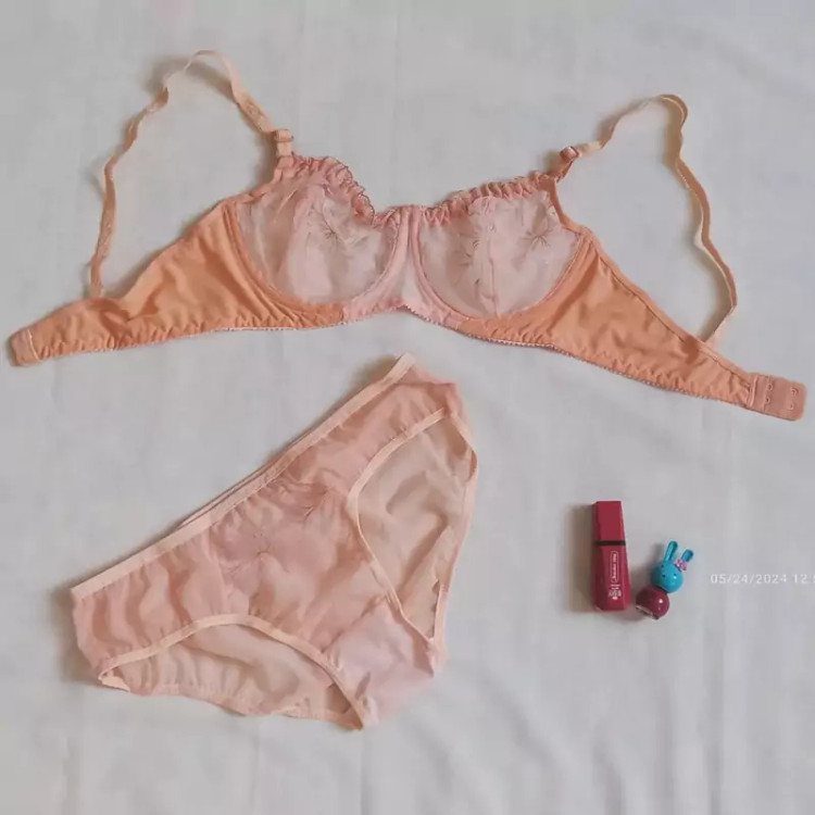 ست شورت و سوتین تورگاز سوتین فنر دار شورت بافاق نخی رنگ ترکیبی گلبهی صورتی سایزبندی 75/80/85/90