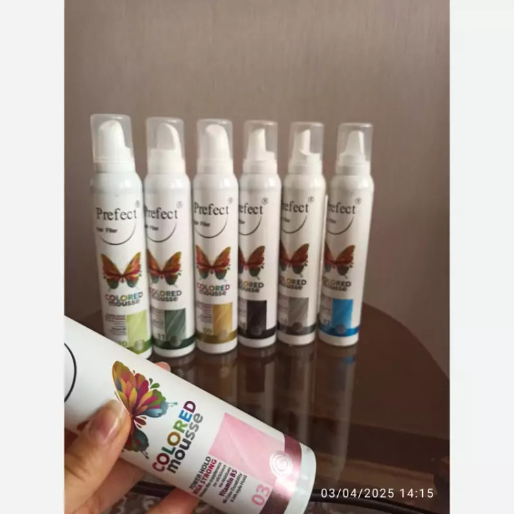 موس مو رنگی پرفکت. حجم محصول 150میل حالت دهنده قوی مو ویتامین B5 جلوگیری از آسیب ناشی از حرارت محافظ در برابر براشینگ بکارگیری آسان قابل استفاده برای انواع مو ایجاد ظاهری درخشانتقویت کننده و نرم کننده ساقه مو کشور مبدا برند ایرا ن شماره مجوز13415/ظ/56 رنگبندی: نقره ای. زیتونی. درایی. ابی کمرنگ. ابی پررنگ. طلایی. صورتی. بنفش درانتهای صفحه فیلم اموزشی را مشاده نماید روش استفاده : 1_موهاتون رو با شامپو بشورید 2_موس مو رو تکون بدید تا از حالت مایع به حالت کف در بیاد 3_روی کف دستتون بریزید و روی موهاتون بمالید 4_با شونه ،شونه کنید تاکاملا آغشته بشه 5_با باد سشوار خشک کنید