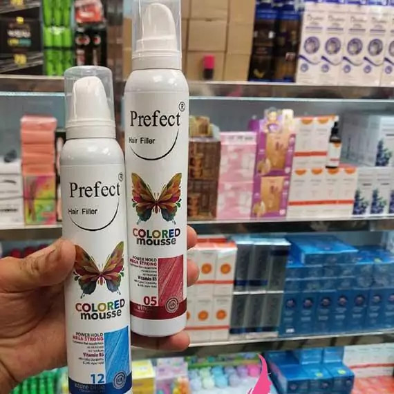 موس مو رنگی پرفکت. حجم محصول 150میل حالت دهنده قوی مو ویتامین B5 جلوگیری از آسیب ناشی از حرارت محافظ در برابر براشینگ بکارگیری آسان قابل استفاده برای انواع مو ایجاد ظاهری درخشانتقویت کننده و نرم کننده ساقه مو کشور مبدا برند ایرا ن شماره مجوز13415/ظ/56 رنگبندی: نقره ای. زیتونی.سبزکمرنگ. ابی پررنگ. طلایی. صورتی. بنفش.مشکی درانتهای صفحه فیلم اموزشی را مشاده نماید روش استفاده : 1_موهاتون رو با شامپو بشورید 2_موس مو رو تکون بدید تا از حالت مایع به حالت کف در بیاد 3_روی کف دستتون بریزید و روی موهاتون بمالید 4_با شونه ،شونه کنید تاکاملا آغشته بشه 5_با باد سشوار خشک کنید