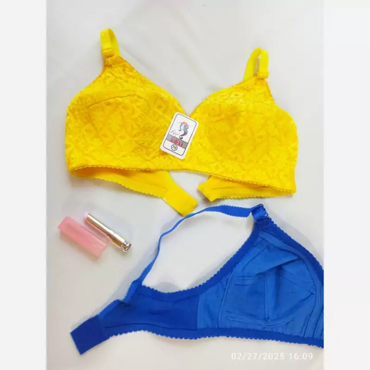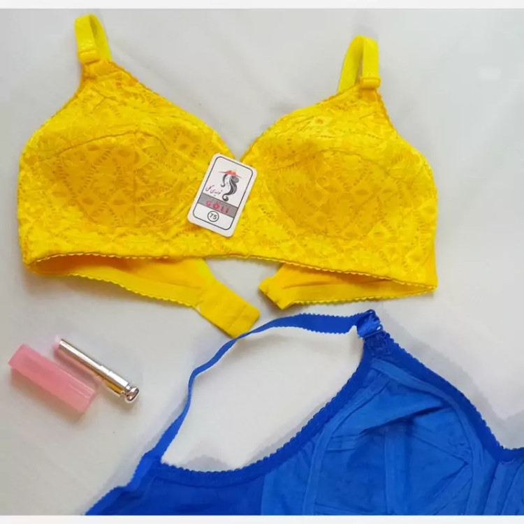 سوتین مادام زنانه مدل کش باریک زیر لایه نخ رویه گیپور باکیفیت ایستایی عالی رنگبندی: زرد سرمه ای سایزبندی: 75/80/85